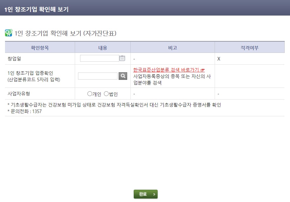 * 증명서류 : 사업자 등록증(사본), 건강보험자격득실확인서