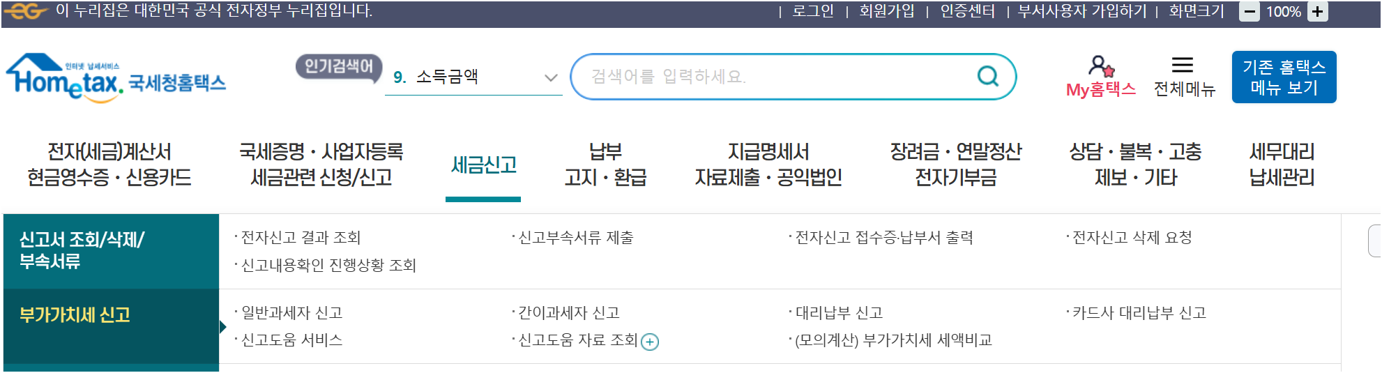 1. 신고 후 홈택스에서 신고내역을 확인할 수 있습니다.