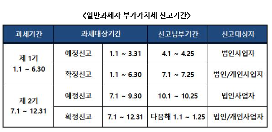 | 참고 사항 - 신고 기간: 부가가치세 신고는 보통 1년에 두 번, 1기(1월~6월)와 2기(7월~12월)로 나누어 진행됩니다. 중간 예정신고는 분기별로 이루어질 수 있습니다. - 신고 기한: 법정 신고 기한을 준수해야 하며, 기한 내에 신고하지 않을 경우 가산세가 부과될 수 있습니다. - 홈택스 이용 도움말: 홈택스 사이트에는 신고 절차에 대한 자세한 매뉴얼과 도움말이 제공되니 참고하시기 바랍니다. |